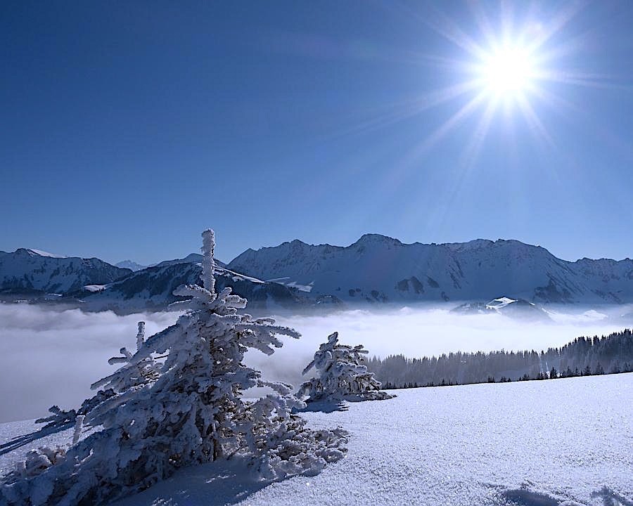 Diese Schneeschuhwanderung ab Schwarzsee-Gypsera erfordert eine gute körperliche Kondition, da sie lange, anstrengende Anstiege beinhaltet, insbesondere zum Schwyberg (1628 m). Vom Gipfel aus hat man bei schönem Wetter einen spektakulären Blick auf den Moléson, die Berra, die Kaiseregg, die Dent de Brenleire, die Alpen und den Jura. Die Route führt abwechselnd über offene Bergkämme, verschneite Lichtungen und durch tiefe Wälder.
